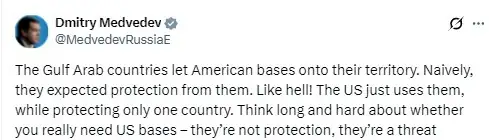 Страны Персидского залива разместили на своей территории американские базы, рассчитывая на защиту. Но на деле всё иначе: США используют их, прикрываясь и защищая лишь одну страну. Хорошенько подумайте: нужны ли вам вообще американские базы - это не защита, а угроза.